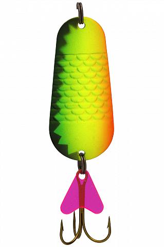 Игра блесны показывает частые плавные колебания, полностью имитируя плывущую рыбку, которую хищник не оставит без внимания.