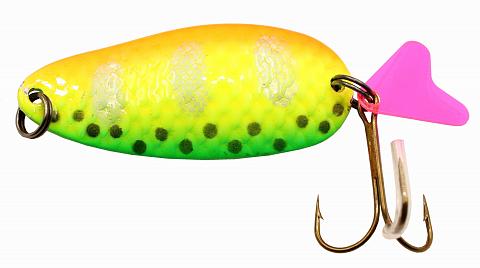 Так блесна совершает постоянные сильные колебания, напоминая хищнику своей игрой плывущую рыбку, которую он не оставит без внимания.