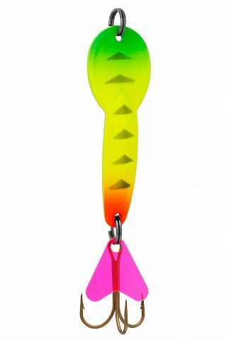 Игра блесны высокоамплитудная, что позволяет ей пересекать не один слой воды. Колебания частые, скоростные. Всё это полностью имитирует плывущую рыбку, которую хищник не оставит без внимания.