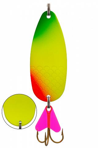Так блесна совершает постоянные сильные колебания, напоминая хищнику своей игрой плывущую рыбку, которую он не оставит без внимания.