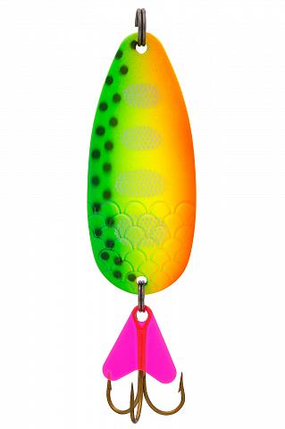 Так блесна совершает постоянные сильные колебания, напоминая хищнику своей игрой плывущую рыбку, которую он не оставит без внимания.