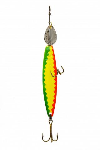 Конструкция блесны дополнена вращающимся лепестком, который обеспечивает частые вибрации для большего привлечения хищника.