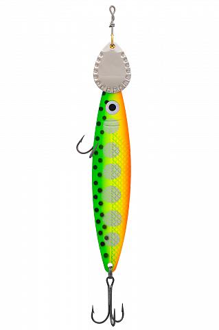 Конструкция блесны дополнена вращающимся лепестком, который обеспечивает частые вибрации для большего привлечения хищника.