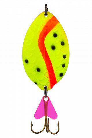 Так блесна совершает постоянные сильные колебания, напоминая хищнику своей игрой плывущую рыбку, которую он не оставит без внимания.