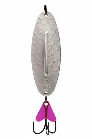 Игра блесны скоростная, колебания длинные, не частые. Всё это полностью имитирует плывущую рыбку, которую хищник не оставит без внимания.