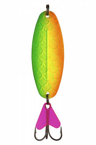 Игра блесны скоростная, колебания длинные, не частые. Всё это полностью имитирует плывущую рыбку, которую хищник не оставит без внимания.