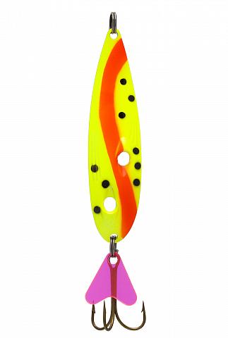Так блесна совершает постоянные сильные колебания, напоминая хищнику своей игрой плывущую рыбку, которую он не оставит без внимания.