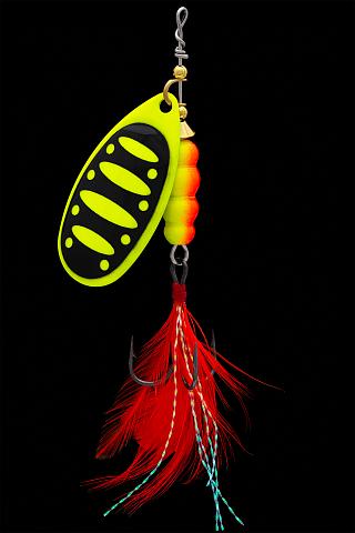 Всю игру блесны берёт на себя лепесток. Именно, за счёт своего большого размера, формы Comet и низкой вогнутости, создаёт быстрые и частые вибрации, которые раздражают хищника на атаку.