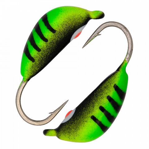 Банан d 2,5 мм, вес 0,5 гр, цвет зеленый с полосками+черный с точкой /10 шт/