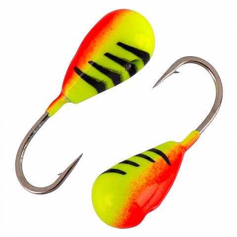 Капля с отверстием и лыской d 2,5 мм, вес 0,2 гр, красно-лимонная с полосками /10 шт/