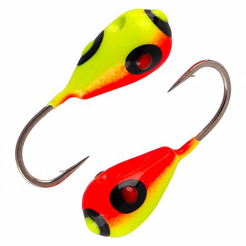 Капля с отверстием и лыской d 2,5 мм, вес 0,2 гр, желто-красная с четырьмя глазкам /10 шт/
