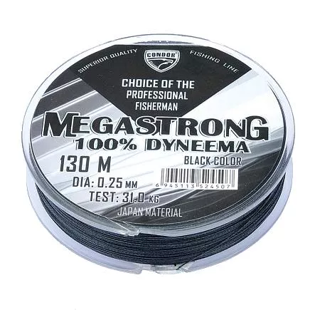 Megastrong , d-0,16 мм, L-130 м, цвет черный, разрывная нагрузка 14,0 кг